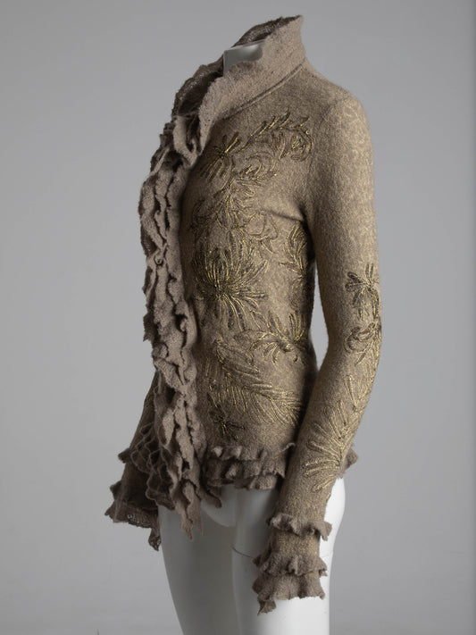 Lainey Keogh Cashmere Cardigan With Gold Embroidery