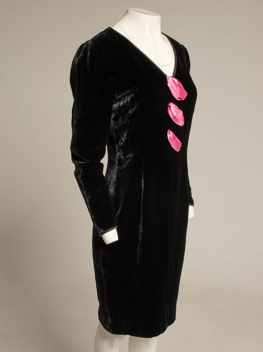 Valentino Boutique Black Velvet Dress with Pink Satin Detail