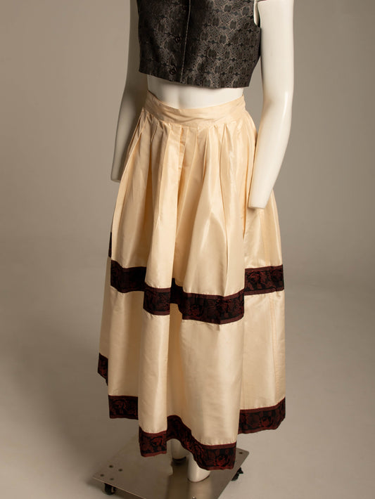Workers for Freedom Cream Silk Taffeta Skirt with Ribbon Detail