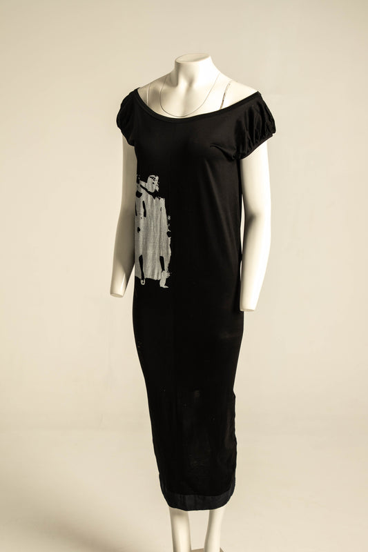 Richmond Cornejo Long Black Dress with Print Circa 80s