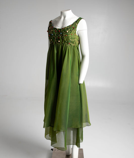 IDOL Empire Line Green Dress with Gold Thread and Beading