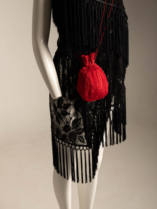 Venetia Studium Fortuny Pleated Red Silk Pouch
