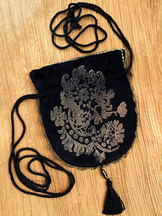 Tirelli Gallenga Por Fendi Screen Printed Black Velvet Pouch Circa 80s