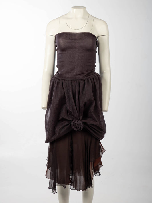 Romeo Gigli Purple Strapless Flower Bud Cocoon Dress Circa 1980s