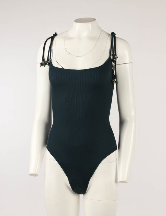 Romeo Gigli Mare Dark Green One Piece with Murano Beads Circa 90s