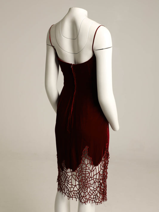 Laetitia Hecht Red Velvet Cobweb Hem Dress
