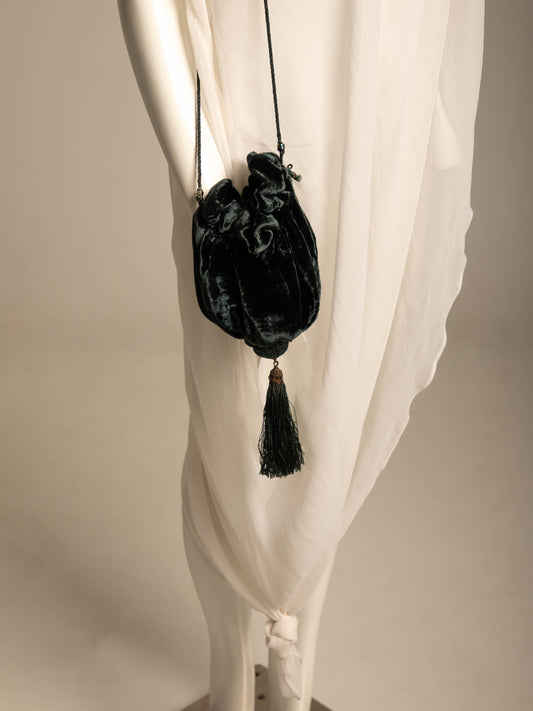 Venetia Studium Fortuny Green Velvet Pouch with Silk Tassel