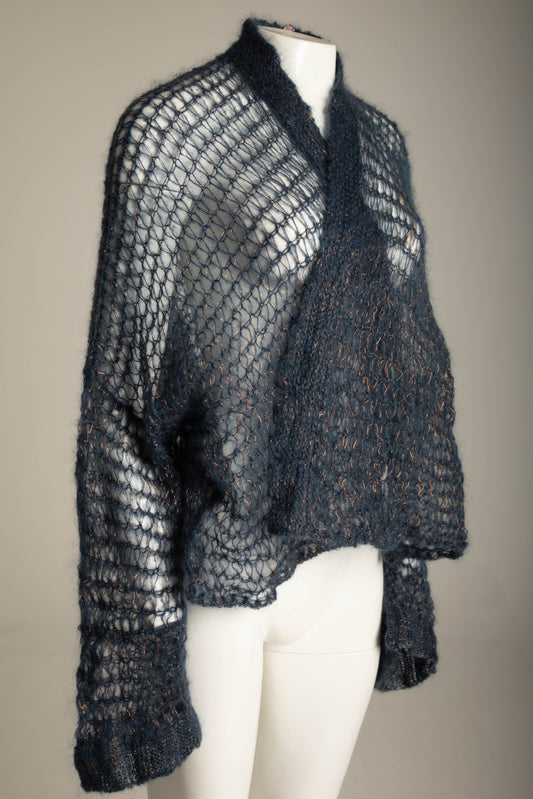 Romeo Gigli 1994 Blue Mohair and Metal Open Weave Cardigan