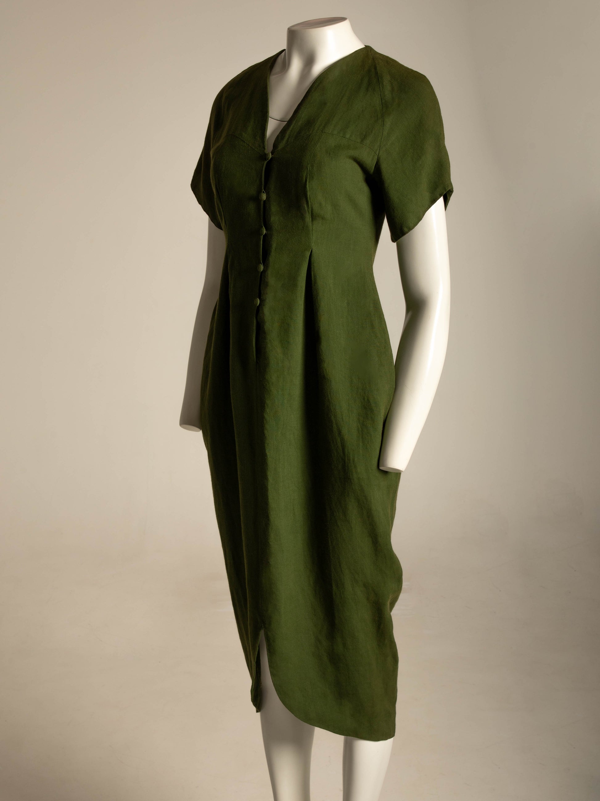 Sybilla Por Gibo Green Linen Dress Circa 80s